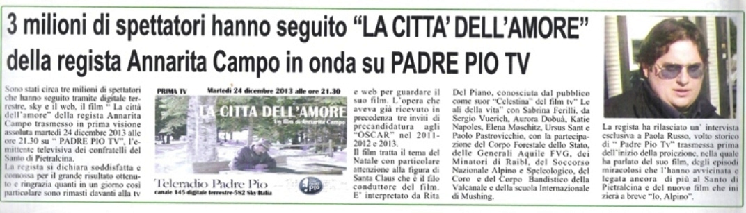 article sur la carrière de 20 ans de directeur Annarita Campo, participe actuellement au tournage du film "IO,ALPINO".