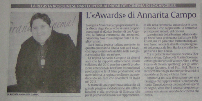 La regista Annarita Campo volerà a Los Angeles per assistere alla